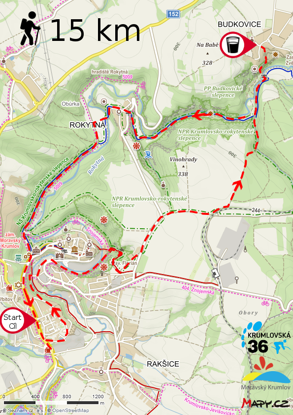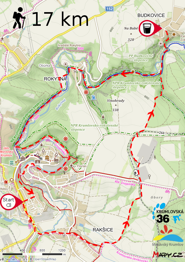 25 km - Restaurace U Blondýny - nádraží Moravský Krumlov (4km) - Němčická hájovna (12km) - Budkovice (16km) - Rokytná (19km) - Restaurace U Blondýny