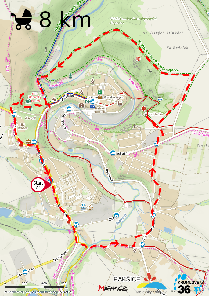 - zajímavosti na trase - Kaple sv. Floriána, vyhlídka na Křižáku, zámecký park s discgolfovým hřištěm
